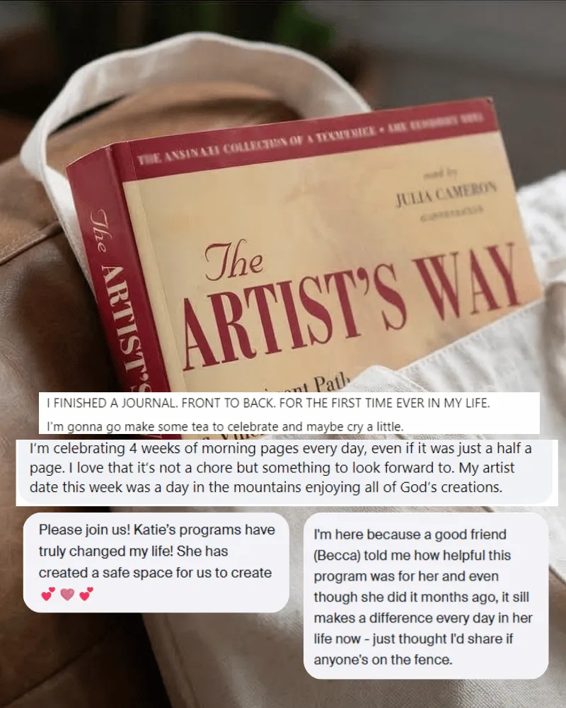 Artist's Way Week is a sacred container where you use journaling, painting, and creative exploration to reconnect with the parts of yourself that got buried and start getting excited about your life again, exactly as it is right now, from wherever you are.