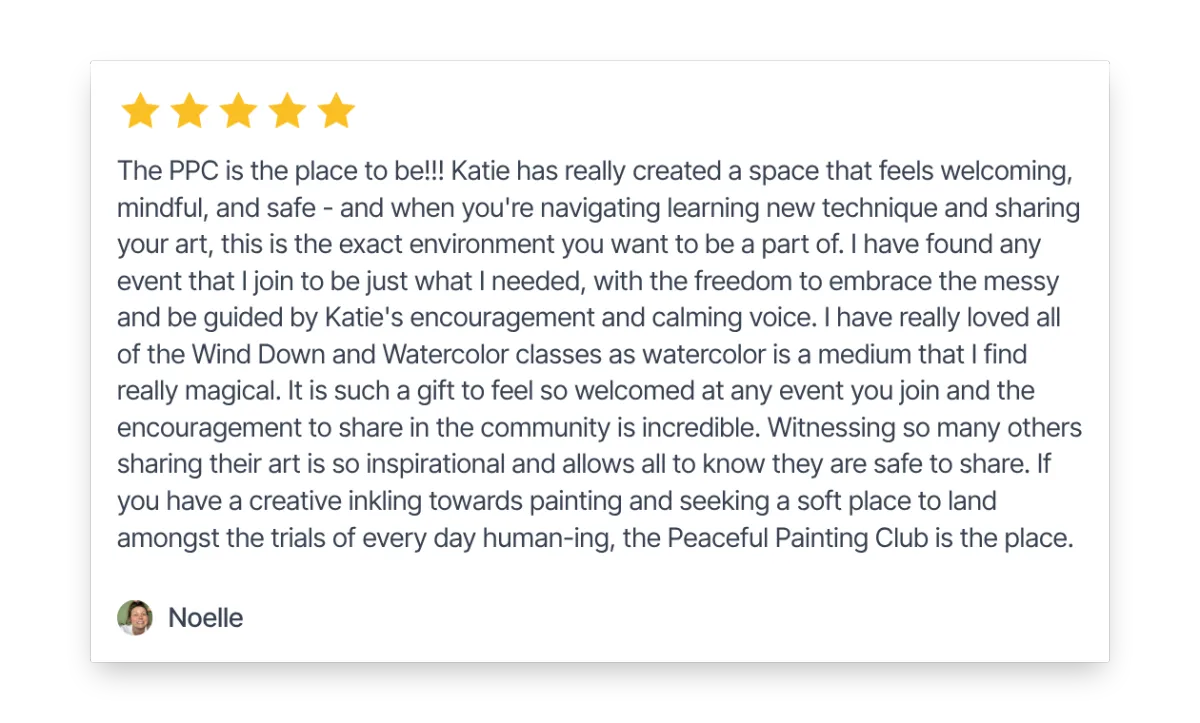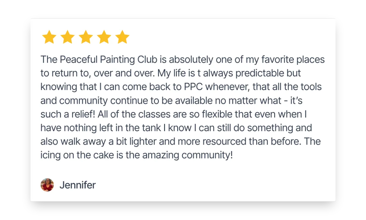 Between classes, you get 150+ on-demand tutorials, supply guides, and a community where women share their messy paintings, their foggy days, and their small wins. Nobody performs. Nobody pretends.